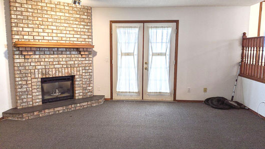 The lower level has a family room with a fireplace, patio doors, and a wet bar. There is also a laundry room with a washer and dryer and a two-piece bath.